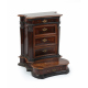 Antico inginocchiatoio a balestra lastronato in legno di palissandro, cinque cassetti, cornici ebanizzate. cm80x69x60