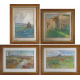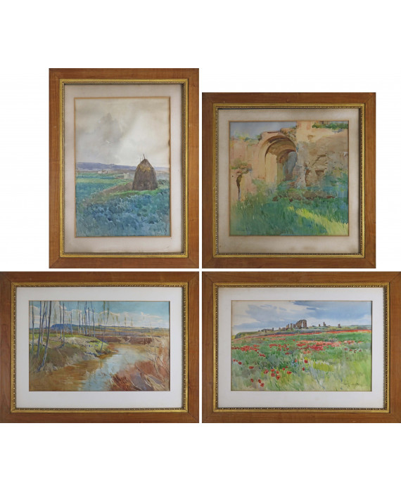 Firma firme e luoghi in bassoTecnica: Serie di 4 acquarelli su cartaDimensioni: cm46x48/36x55/55x38