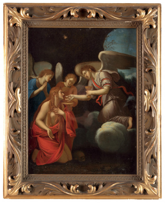 Comunione della Maddalena, con cornice. Il dipinto è da porre in relazione con il quadro già conservato alla Matthiesen Gallery di Londra, in passato attribuito a Francesco Albani. Attualmente l’opera è stata restituita al pittore bolognese Lucio Massari (Bologna, 1569-1633).